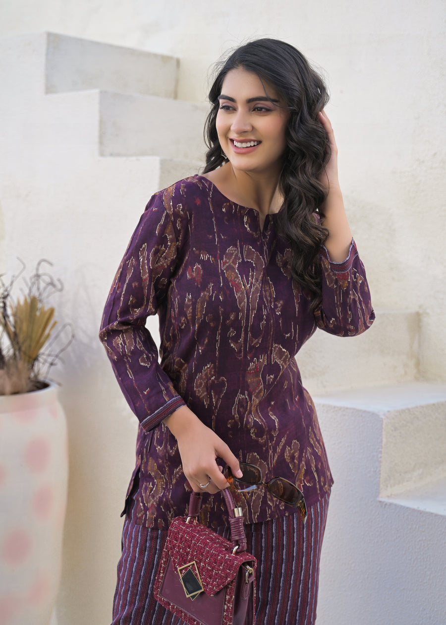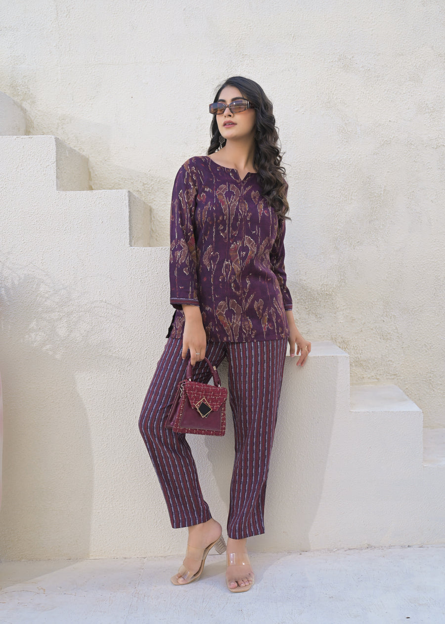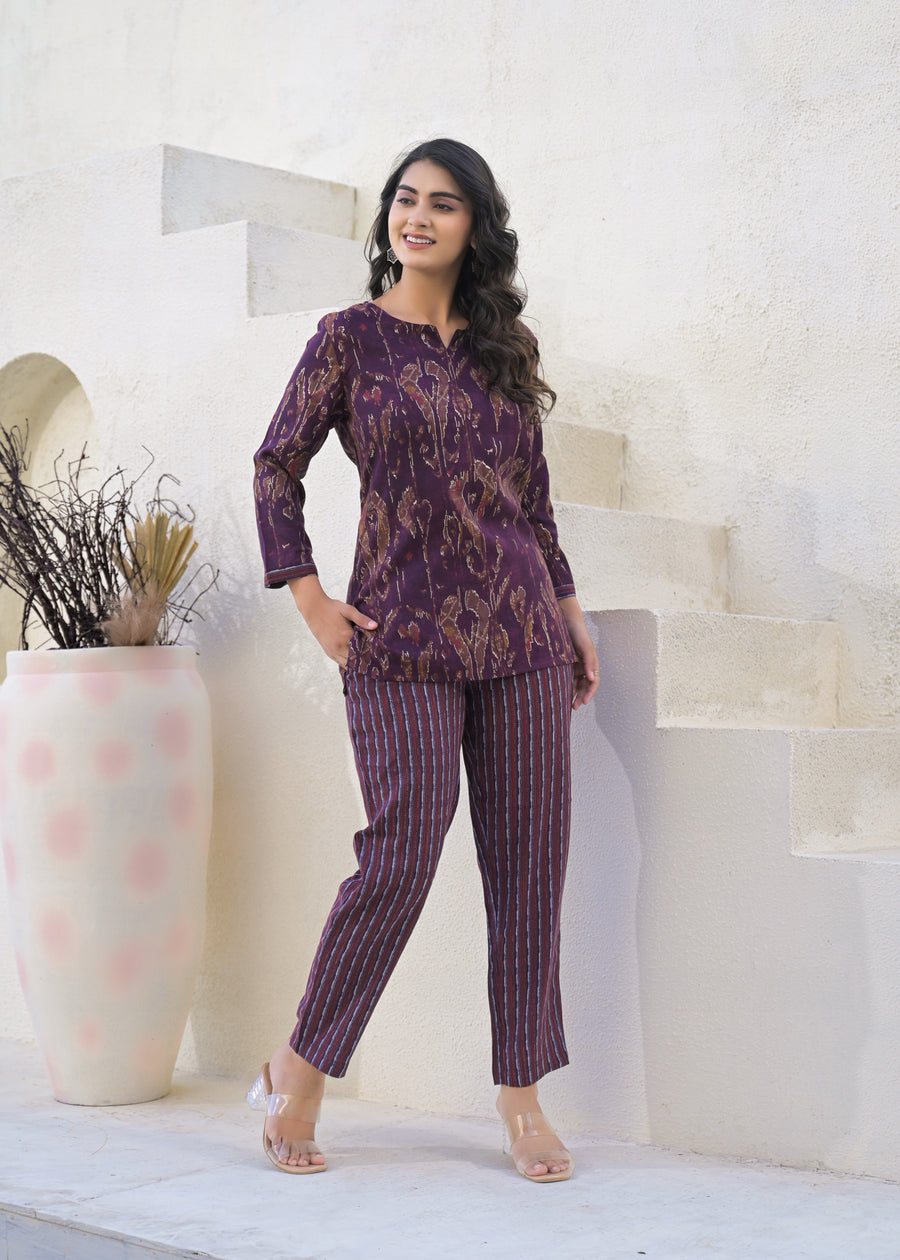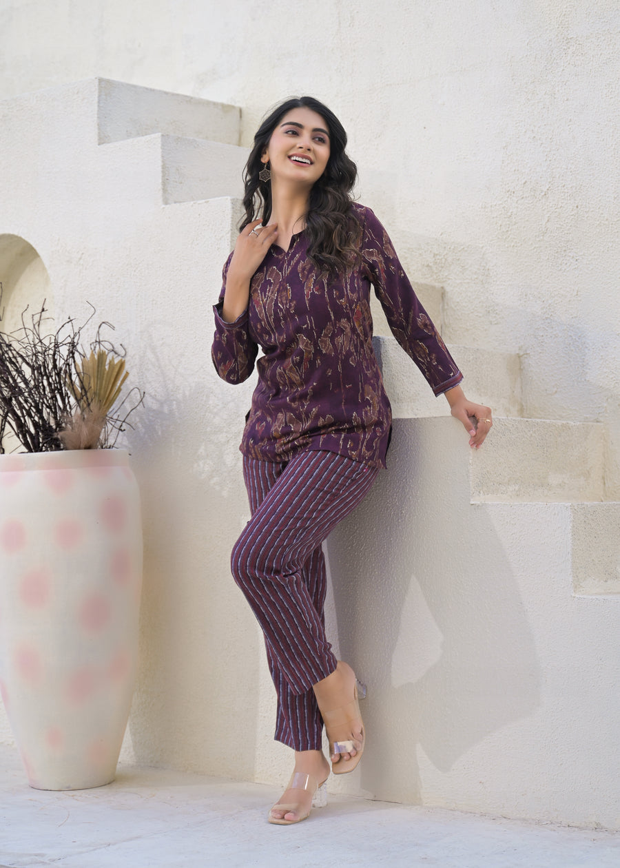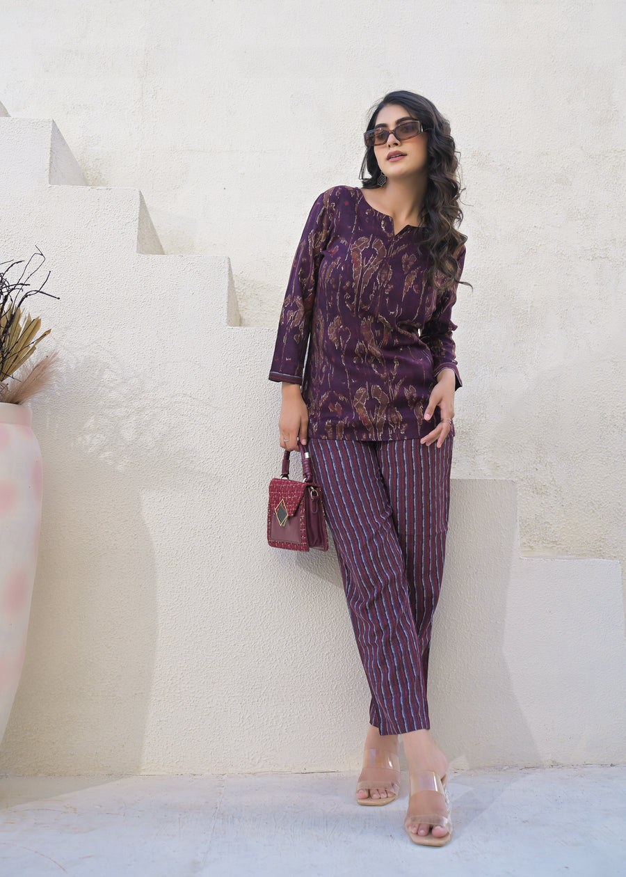 Printed Round Neck Top With Trousers Co-Ords