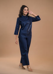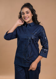 Printed Shirt Collar Shirt With Trousers Co-Ords Set
