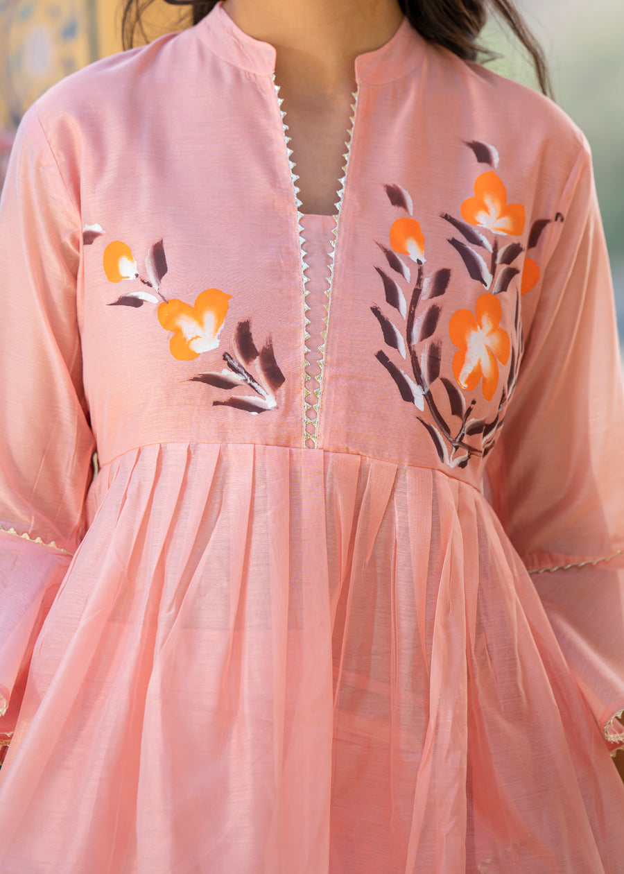 Women Floral Printed Regular Chanderi Cotton Kurti with Skirt & With Dupatta