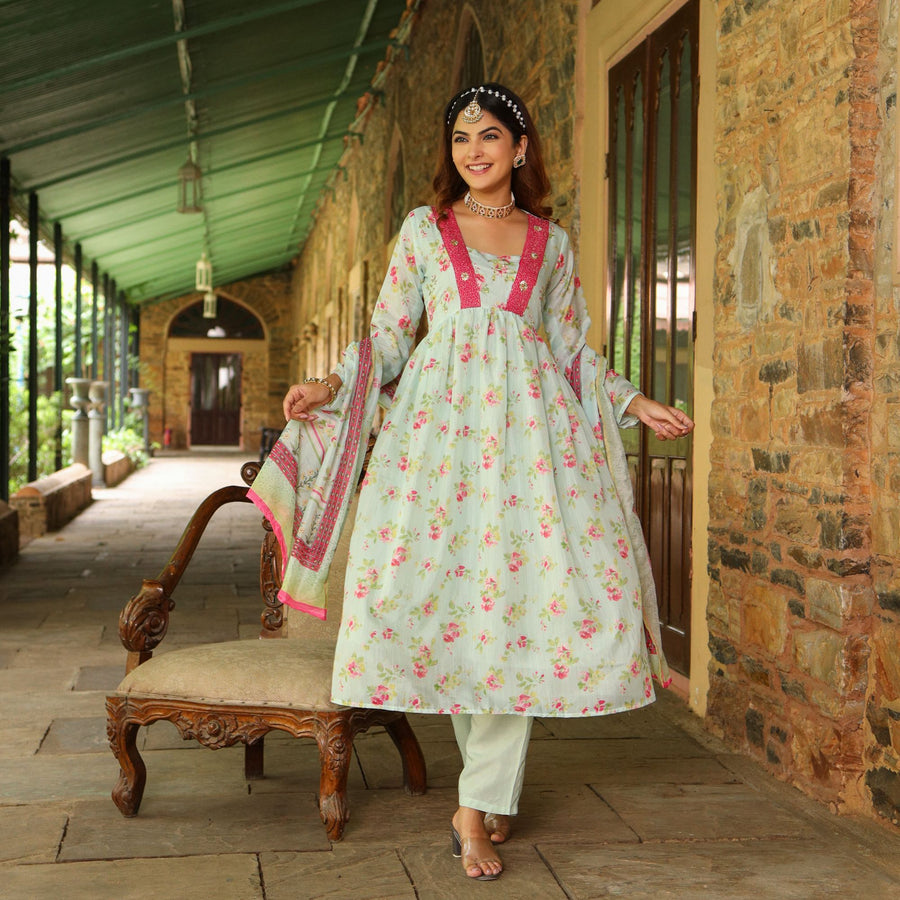Invigorate your wardrobe collection this season by adding the captivating collection by Roohaniyat . Crafted in premium quality fabric, this regular-fit silhouette is a classic pick for a family get-together OR Festival vibes . Style this set with a pair of nude heels and minimal accessories to attain a flawlessly stunning look.